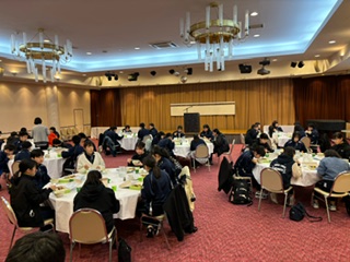 修学旅行最終日です。眠そうな顔の人もいますが、しっかりご飯を食べて頑張ろう。